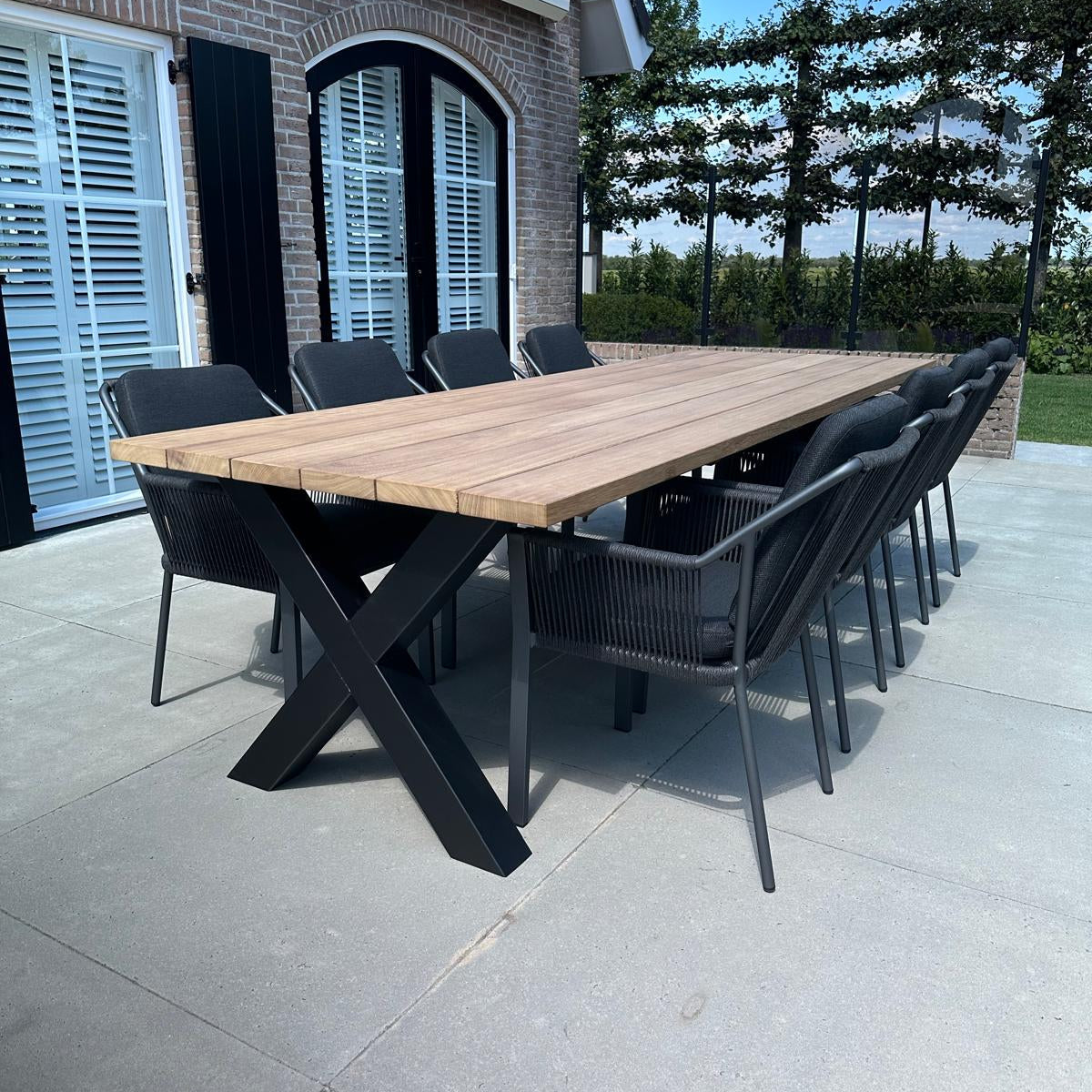 Iroko tuinset X-poten zwart - tuinstoelen liv zwart 8 persoons - 300 cm