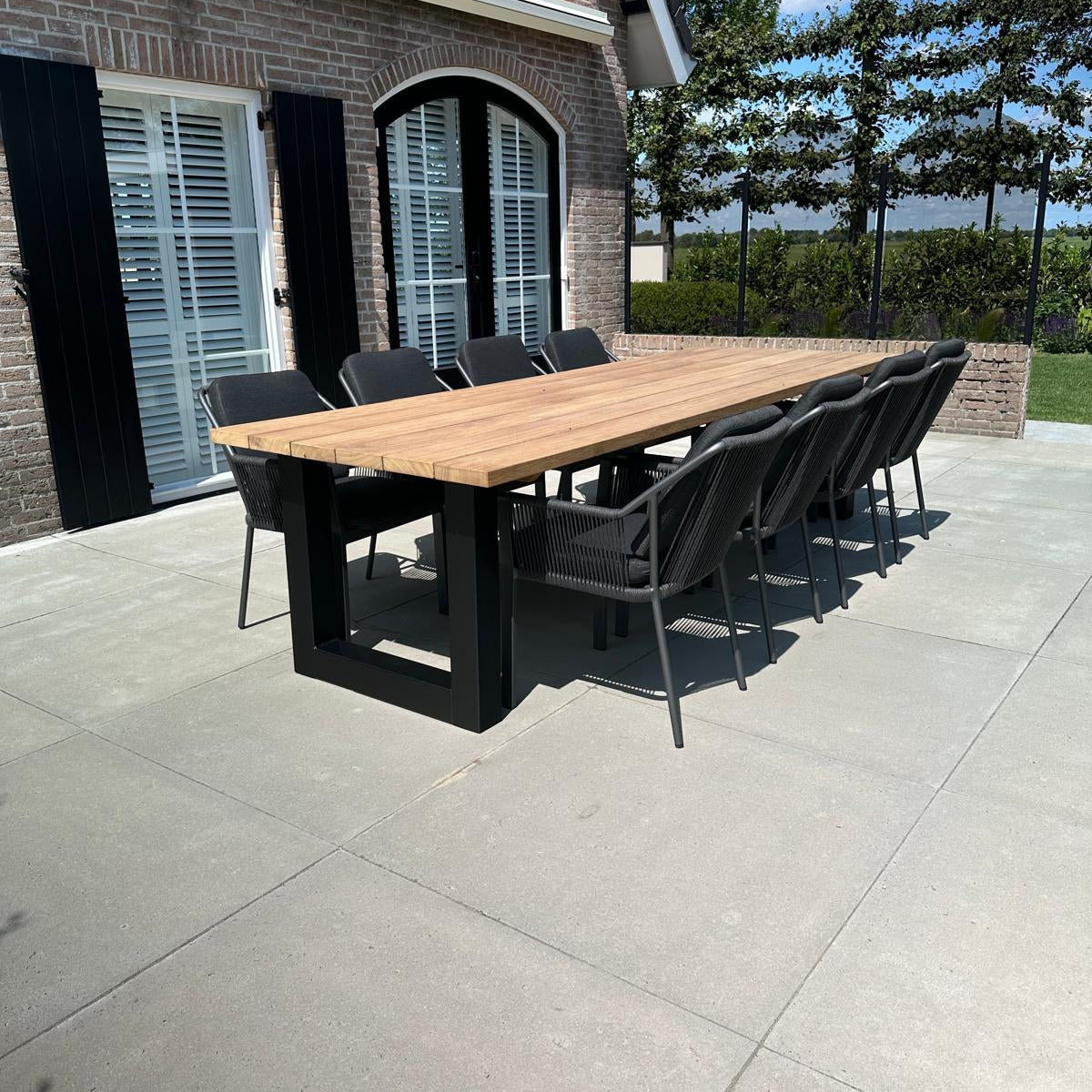 Iroko tuinset U-poten zwart - tuinstoelen liv zwart 8 persoons - 300 cm