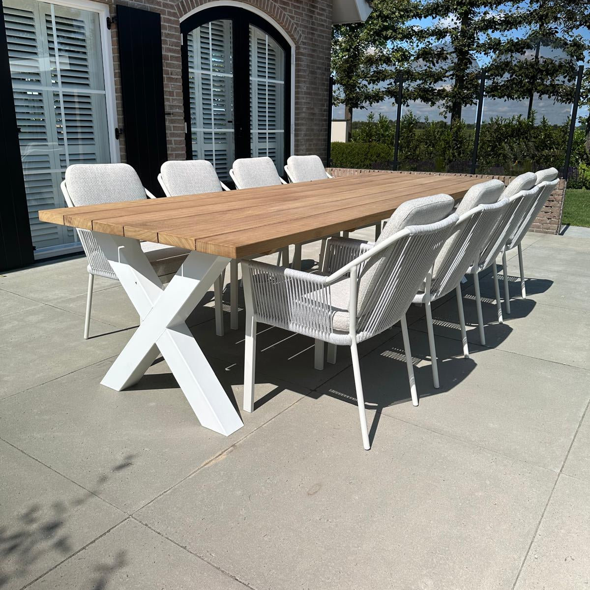 Iroko tuinset X-poten wit - tuinstoelen liv wit 8 persoons - 300 cm