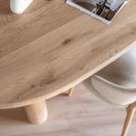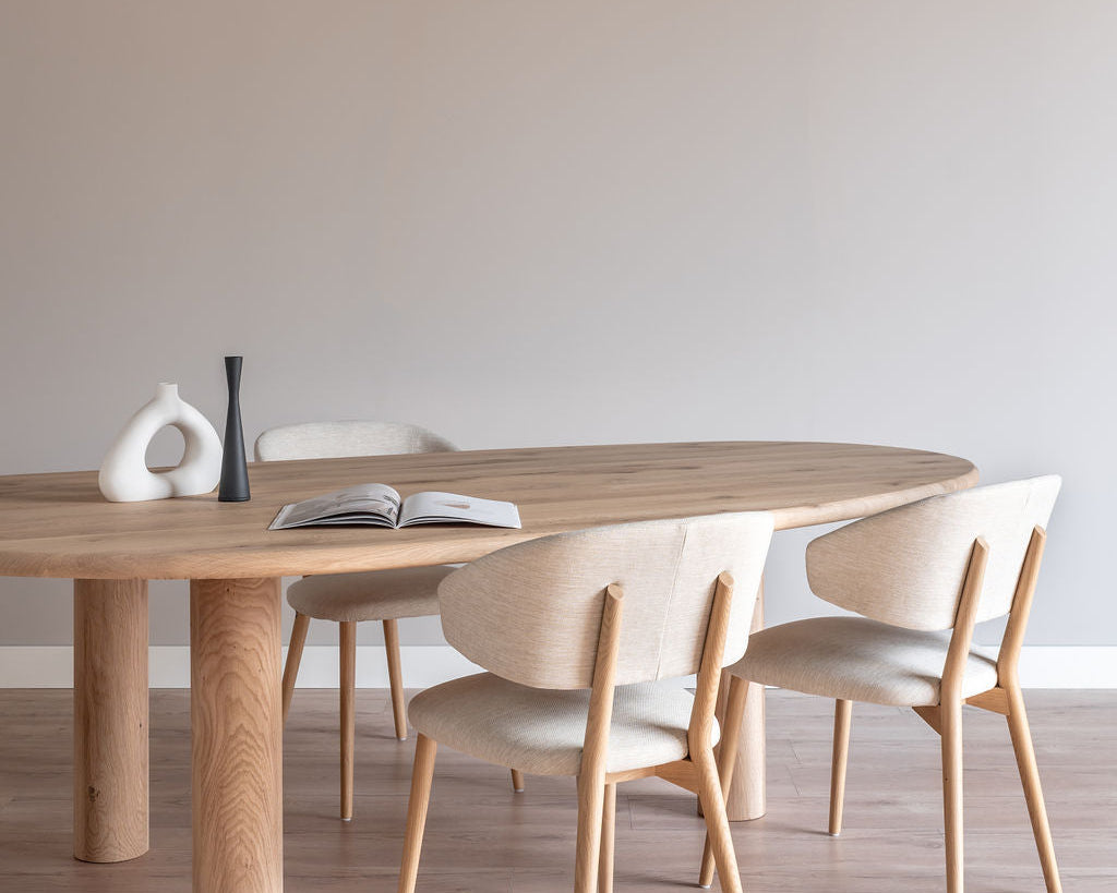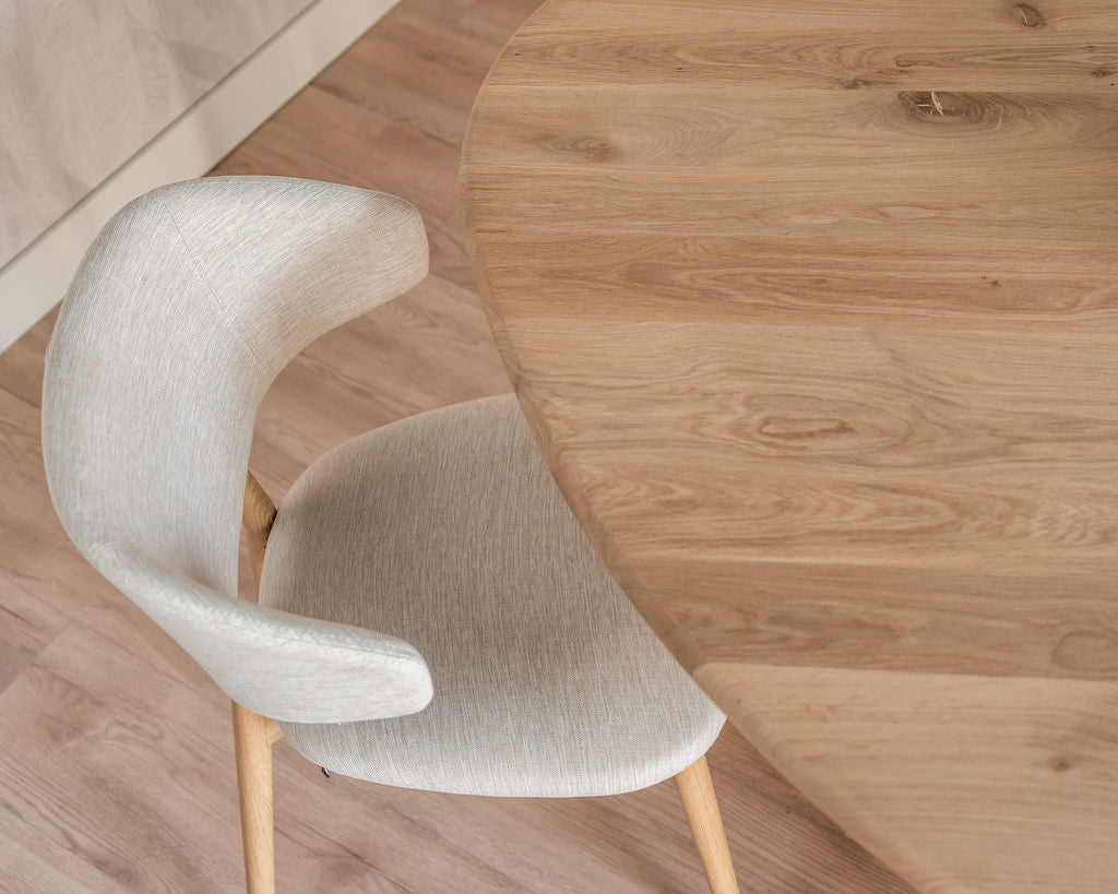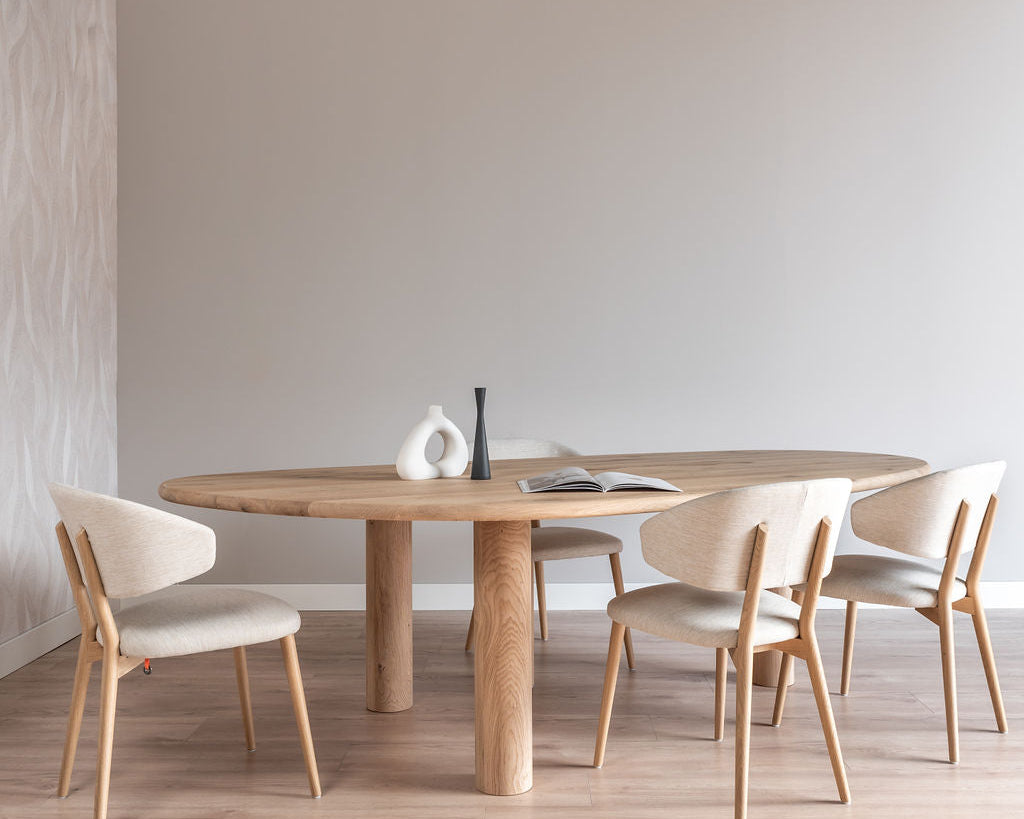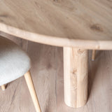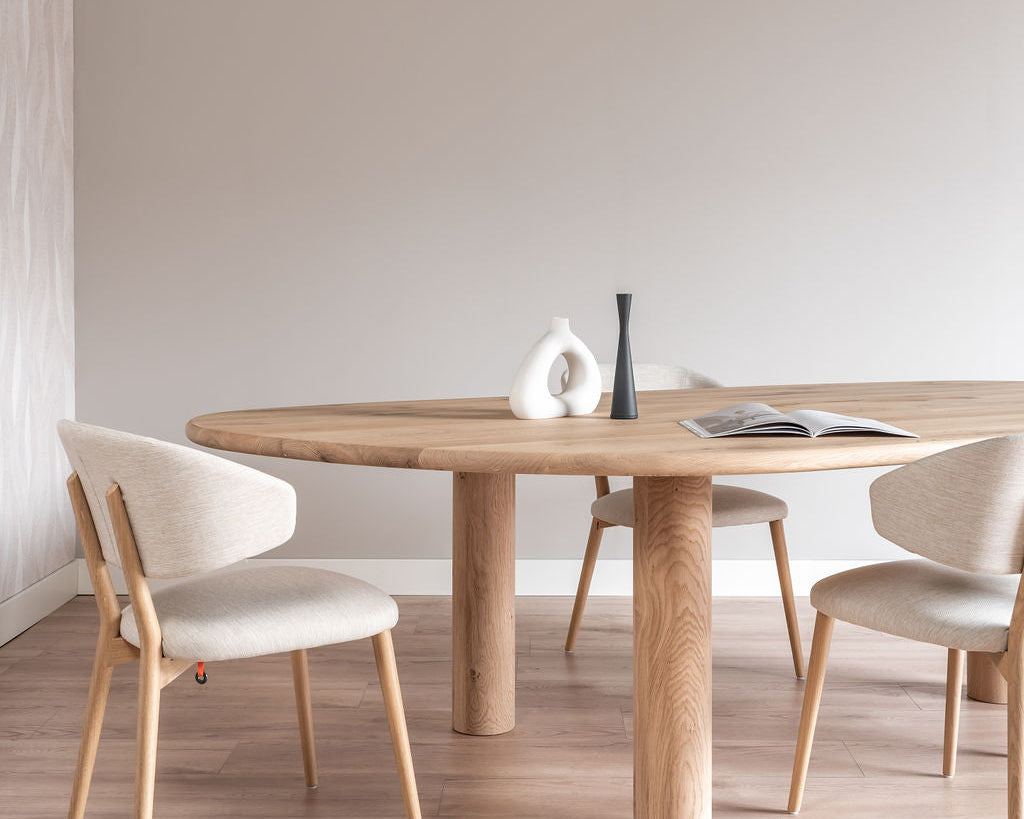Maak kennis met onze prachtige organische eiken eettafel rondo. volledig gemaakt uit massief eikenhout in onze eigen werkplaats. Met zijn eigentijdse ontwerp, samen met drie stijlvolle ronde poten van 15 cm doorsnee, is deze tafel niet alleen functioneel maar zal ook een prachtig geheel vormen in jou eetkamer.